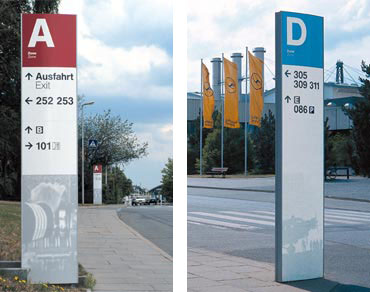 sendes Leitsystem entworfen und realisiert. Während bei den Stelen der